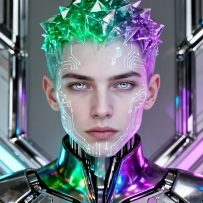 SuperheroesCutting-edge AI avatar featuring an androgynous cybernetic superhero with translucent skin, circuit markings, and piercing silver-blue eyes in a sleek technological design.