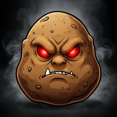 Menacing cartoon potato monster avatar with glowing red eyes and sharp teeth, perfect for gaming profiles and bold digital identity design.