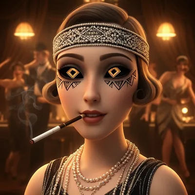 3D RenderStunning 3D render of a glamorous 1920s flapper avatar with art deco details, vintage styling, and speakeasy-inspired character design perfect for digital profiles.