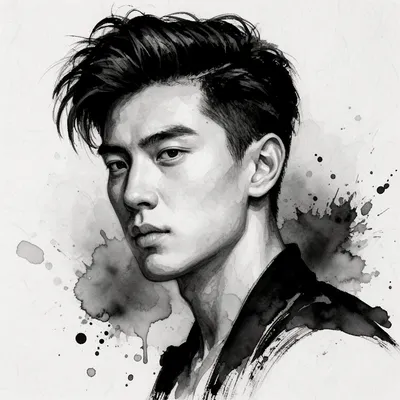 SketchExpressive sumi ink portrait avatar with bold brushstrokes, modern East Asian style, dynamic zen-inspired digital illustration with ink wash effects.