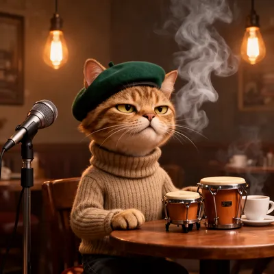 3D RenderStylish 3D render of a cat character in a beret and turtleneck, embodying vintage beatnik cool with a sophisticated, artistic profile picture aesthetic.