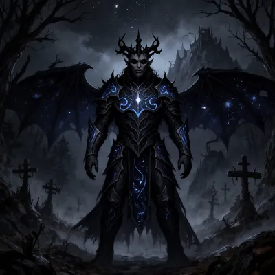 MythicalIntense Slavic dark god avatar with void-black eyes, elaborate night-sky armor, and powerful supernatural presence perfect for fantasy profile imagery.