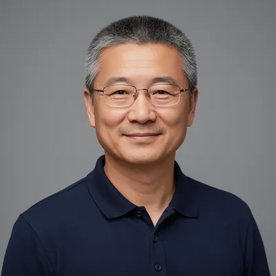 RealisticHigh-quality AI-generated avatar of a sophisticated Chinese professional with salt-and-pepper hair and wire-frame glasses, perfect for business profiles and digital identity.