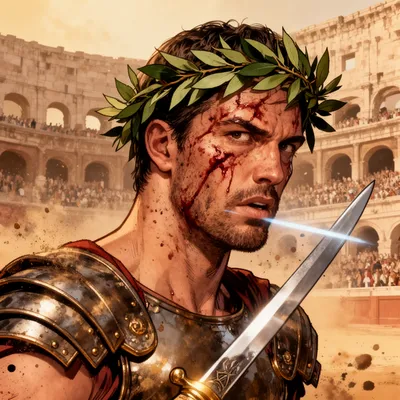 Dynamic AI-generated comic book style avatar of a battle-worn Roman gladiator with intense detail, capturing historical warrior heroism and dramatic arena atmosphere.