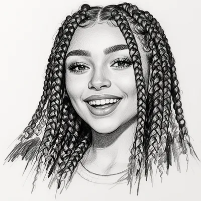 SketchDynamic pencil sketch portrait of a confident young woman with box braids, created using bold calligraphic brushstrokes and contemporary artistic technique.