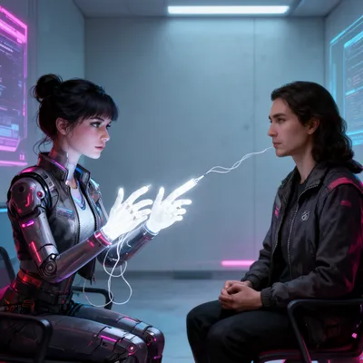 CyberpunkSleek digital avatar of a clinical memory deletion expert with glowing white fingertips, embodying futuristic cyberpunk aesthetic and technological detachment.