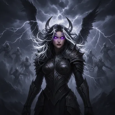 Dark GothicIntense dark gothic AI avatar featuring a fierce storm valkyrie with electric violet eyes, lightning-streaked hair, and dramatic dark armor design.