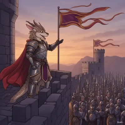 Epic anthro furry avatar featuring a commanding dragon military leader in ornate armor, perfect for role-playing and fantasy profile images.