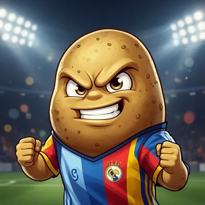 Fierce and energetic cartoon potato monster avatar with a bold sports jersey, pumped-up eyes, and a determined grin. Perfect playful character profile image.