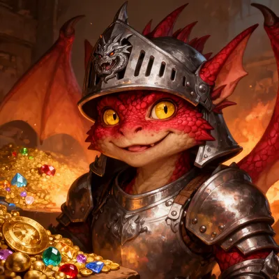 FantasyVibrant AI-generated fantasy avatar featuring a brave kobold dragon knight with gleaming red scales, golden eyes, and ornate armor in warm forge light.