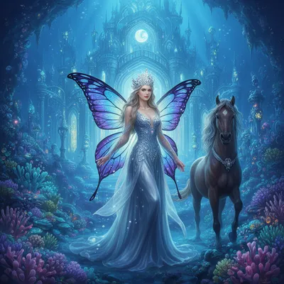 FantasyEnchanting fantasy avatar featuring an ethereal fairy queen with iridescent wings, silver crown, and mystical underwater kingdom aesthetic for digital profiles.