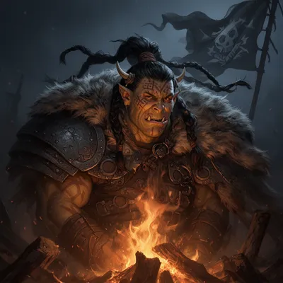 FantasyPowerful fantasy AI-generated orc avatar with fierce tribal warrior design, intricate battle scars, dramatic lighting, and authentic mythical character style.