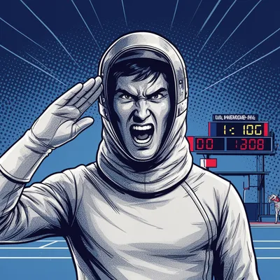 Pop ArtVibrant pop art avatar of a fierce fencing athlete with bold graphic design, halftone color effects, and competitive intensity perfect for profile images.