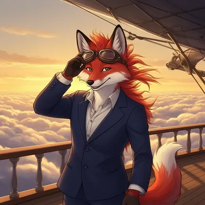 FurryProfessionally designed anthropomorphic fox avatar in vintage pilot style with navy blazer and aviator goggles, perfect for digital profiles and character representation.