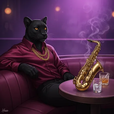 FurryStylish anthropomorphic black panther avatar with vintage jazz club aesthetic, featuring sleek design and sophisticated urban character vibe.