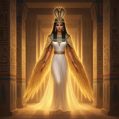 MythicalRegal AI-generated avatar of Isis featuring divine Egyptian goddess styling, golden magical glow, elaborate headdress, and enchanting mystical design.