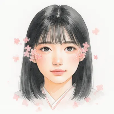 WatercolorDelicate AI-generated watercolor portrait avatar featuring soft Japanese woman with refined beauty, subtle color palette of peach and Payne's gray, elegant digital art style.