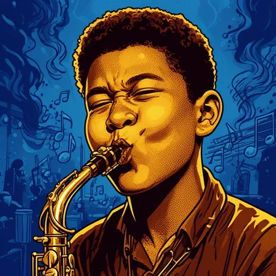 Pop ArtDynamic AI-generated pop art avatar featuring a passionate saxophone musician with vibrant graphic design style, perfect for music and art enthusiasts.
