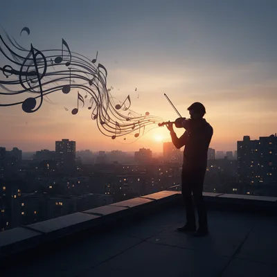 Rooftop Dawn Violinist