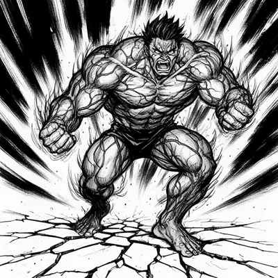 MangaPowerful manga-style avatar featuring an enraged berserker warrior in mid-transformation, with detailed crosshatching and dynamic muscular intensity.