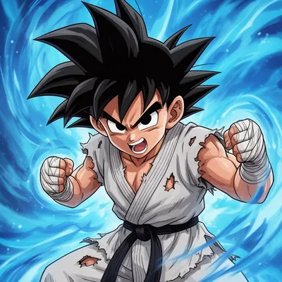 Dynamic cartoon-style AI avatar of an energetic young martial artist with intense expression, bandaged fists, and wild black hair, perfect for gaming and profile displays.