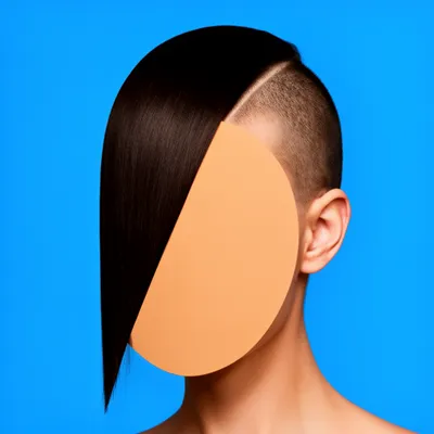 Modern geometric AI avatar featuring a sleek undercut hairstyle with asymmetric design against a vibrant blue background, capturing edgy minimalist style.