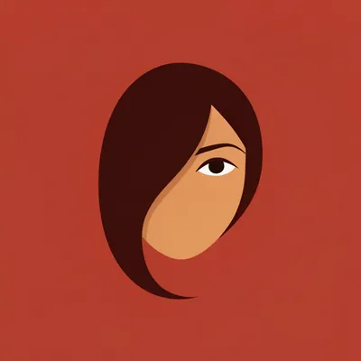 MinimalistElegant minimalist AI-generated avatar featuring a mysterious woman with one eye visible, sweeping dark hair, and a bold cherry red background.
