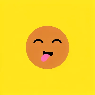 MinimalistVibrant yellow minimalist avatar with playful circular face, cheeky protruding tongue, and mischievous upward eye arcs in a whimsical digital design.