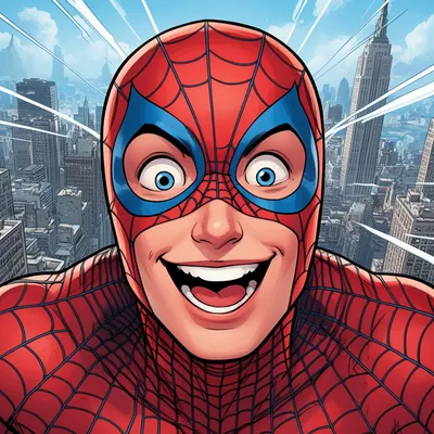 Vibrant comic-style AI avatar featuring a web-textured monster superhero with bright eager eyes and energetic urban backdrop, perfect for creative profiles.