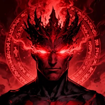 Intense crimson superhero avatar with glowing magic eyes and chaotic energy, perfect for dynamic profile imagery featuring mysterious comic book styling.
