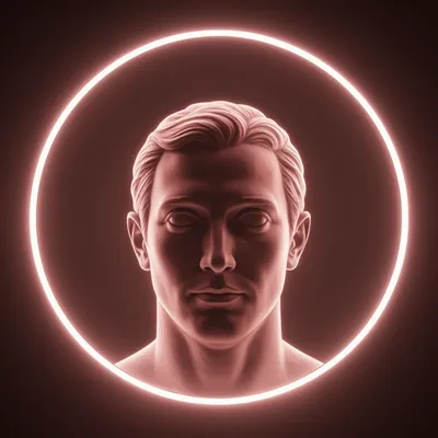 Serene digital portrait with rose-gold neon halo, featuring minimalist cyberpunk-inspired avatar design with luminescent ring and ethereal lighting effect.