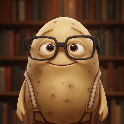 MonstersCharming cartoon-style AI avatar of a shy nerdy potato monster with thick glasses and tiny suspenders, perfect for unique profile picture designs.
