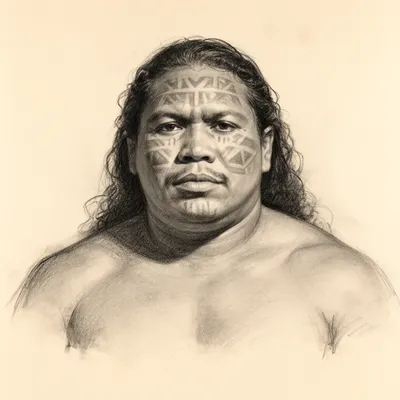 SketchAuthentic hand-drawn charcoal sketch avatar featuring a powerful Pacific Islander man with traditional markings, soft tones and sensitive artistic rendering.