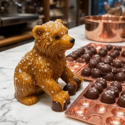Unique AI-generated avatar featuring a magical bear creature blending salted caramel colors with crystalline details, perfect for creative digital profiles.