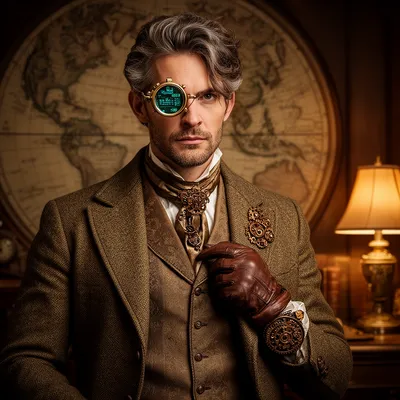 SteampunkElegant steampunk intellectual AI avatar with brass monocle, leather gloves, and vintage academic styling perfect for creative profiles and character design.