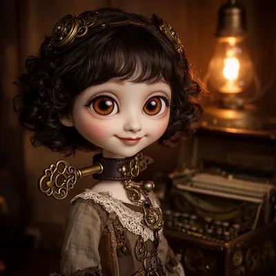 SteampunkIntricate steampunk AI avatar with porcelain skin, brass mechanism, curly hair, and vintage mechanical charm creates an enchanting digital character portrait.