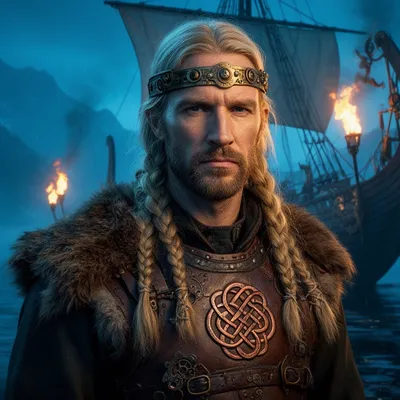 Immersive AI-generated steampunk avatar featuring a Nordic warrior with brass details, leather armor, and intense blue-toned profile with historical aesthetic.