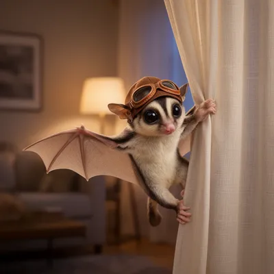 PetsCute baby sugar glider in tiny pilot cap avatar, capturing adventurous spirit with whimsical flying pose and expressive dark eyes, perfect for playful profile image.