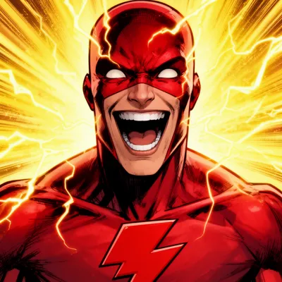 SuperheroesHigh-energy superhero AI avatar with electric red lightning design, comic-style portrait featuring exhilarating speed force aesthetic and intense facial expression.