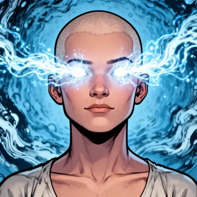 Comic BookDynamic AI-generated comic book style avatar of a young telepath with shaved head, glowing mind energy, and powerful psychic background design.