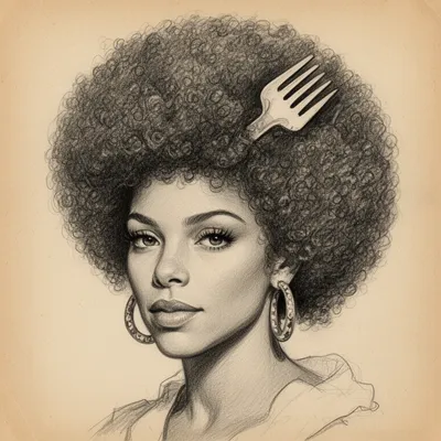 SketchNostalgic graphite pencil sketch avatar of a Black woman with textured afro, retro hoop earrings, and warm vintage paper styling from the 1970s.