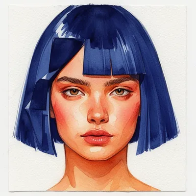 WatercolorArtistic AI-generated watercolor avatar featuring a bold graphic young woman with asymmetrical indigo bob and vibrant warm skin tones, perfect for creative profiles.