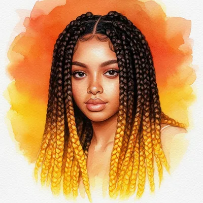 WatercolorStunning AI-generated watercolor avatar featuring a young woman with gradient ombre box braids, soft textured details, and warm complementary color palette.