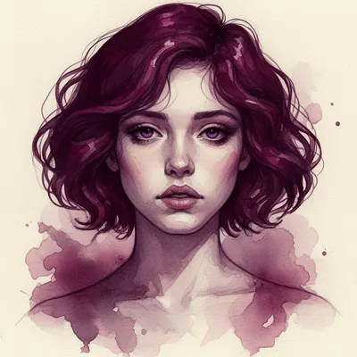 WatercolorEthereal AI-generated watercolor avatar of a woman with short magenta hair and deep violet eyes, featuring soft plum and rose color palette on textured paper.