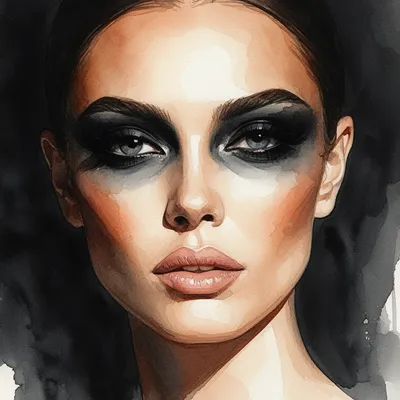 WatercolorLuxurious AI-generated watercolor avatar featuring a glamorous woman with bold smokey eye makeup and dramatic artistic styling on smooth paper background.